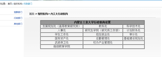 2、将光标移动到“组织机构”栏目上,点击“行政部门”栏目